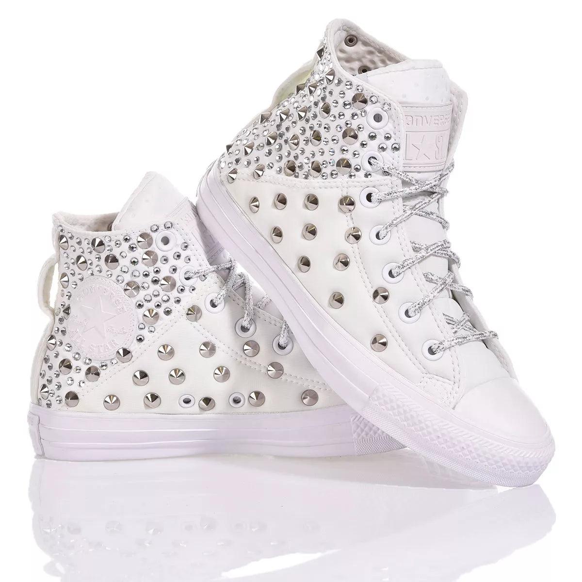 Converse Brea White è la sneaker custom da donna, ricoperta di borchie a stesura larga per dare spazio nella parte posteriore agli spettacolari swarovski crystal che la rendono scintillante e preziosa.