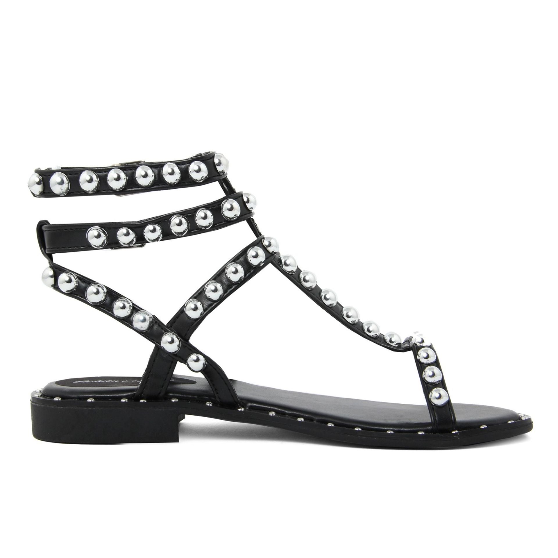 Detalles: tachuelas , correa en el tobillo , punta redonda