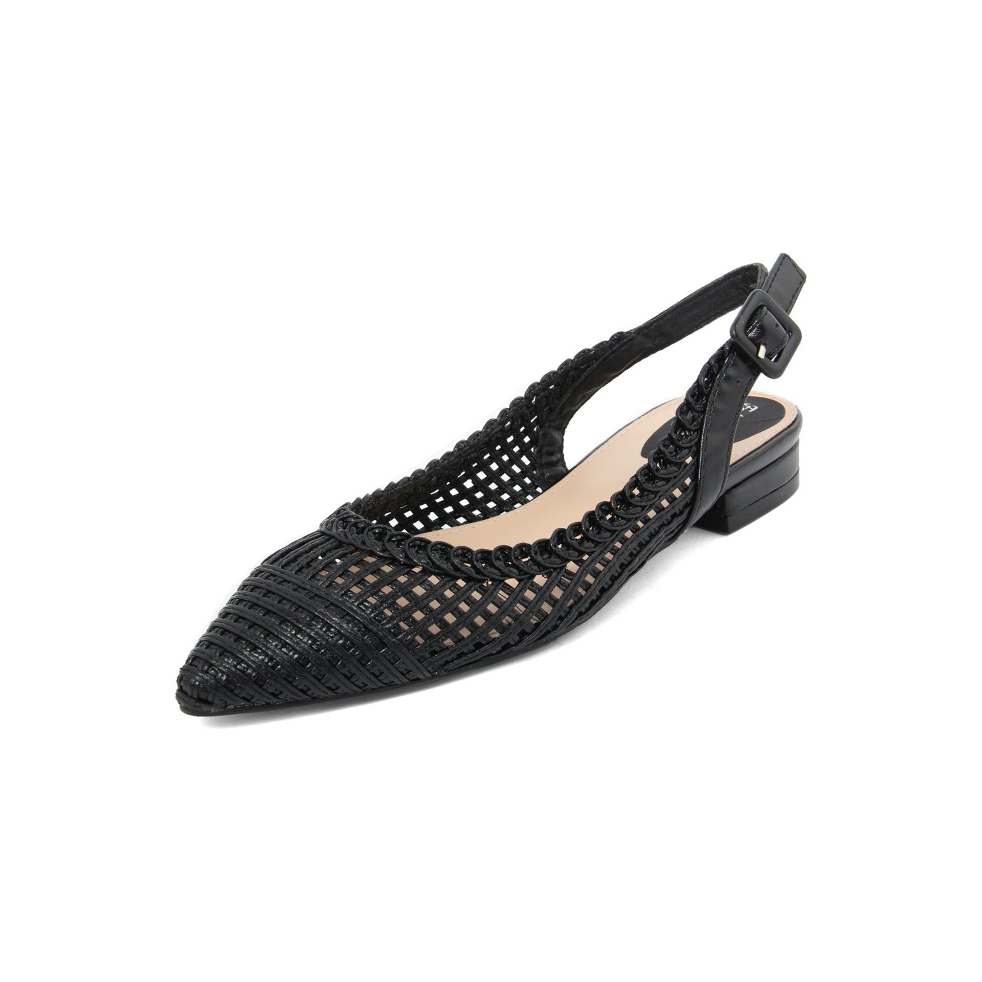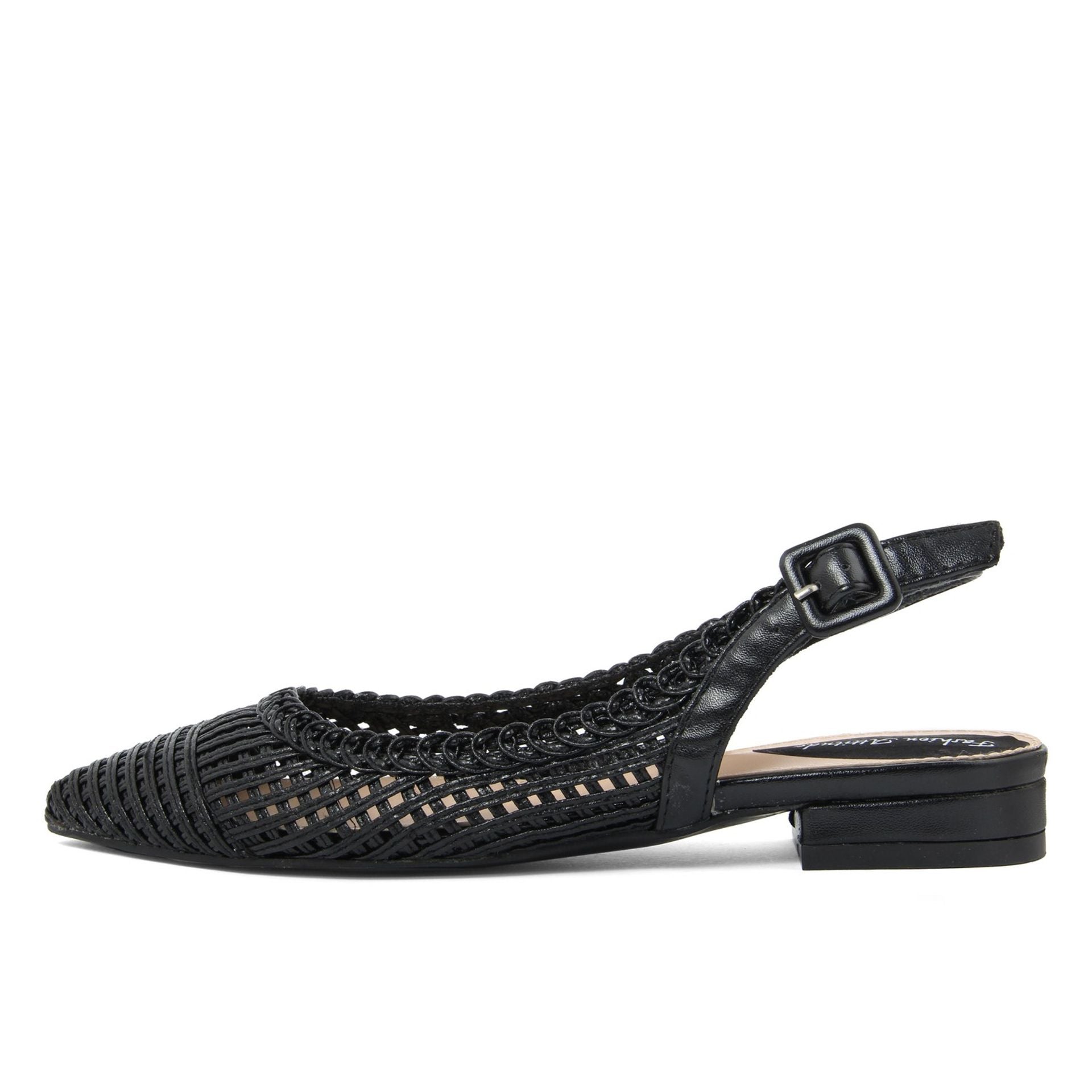 Detalles: correa de tobillo y punta puntiaguda.