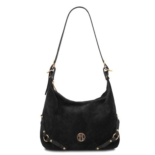 Tipologia: Borsa Hobo - Composizione: Pelle martellata, Pelle scamosciata, Fodera in poliestere - Caratteristiche: Costruzione morbida, 1 scomparto - Descrizione esterna: Tasca sul retro, Logo TL in metallo - Descrizione interni: Tasca aperta, Tasca con zip - Parti metalliche: Accessori color oro - Chiusura: Chiusura con zip - Manici: Manico regolabile in pelle - Accessori: Sacca protettiva