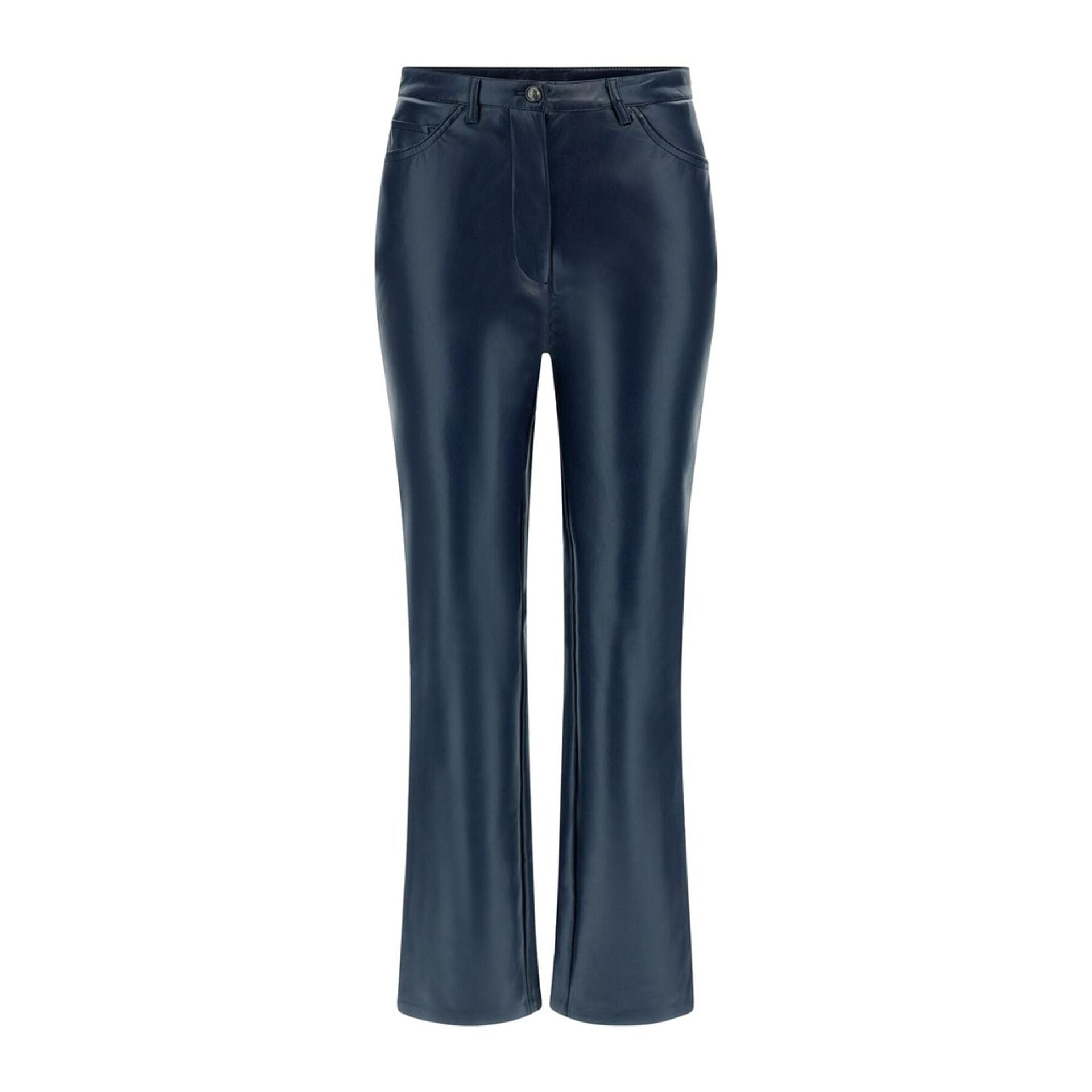 PANTALONE, DA DONNA, CINQUE TASCHE, STRAIGHT FIT, ECOPELLE, TINTA UNITA, CON LOGO, CHIUSURA ZIP E BOTTONE, KELLY STRAIGHT