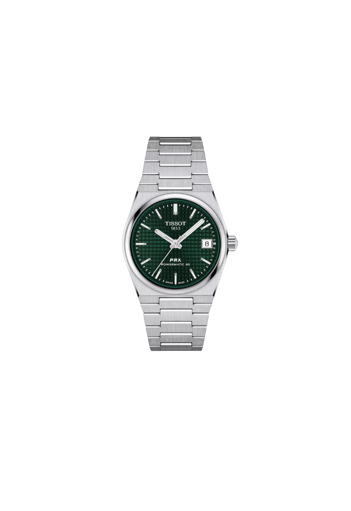 Un segnatempo elegante che unisce il fascino vintage degli anni ’70 alla precisione moderna. Il Tissot PRX 35mm Automatico si distingue per il quadrante verde soleil intenso, luminoso e raffinato, racchiuso in una cassa in acciaio integrata dal design armonioso. Ideale per chi cerca uno stile originale, distintivo e versatile.