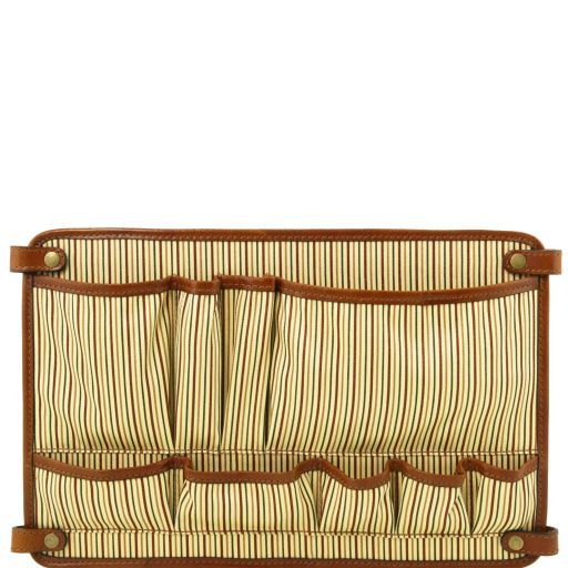Composizione: Pelle pieno fiore conciata al vegetale tamponata a mano, Fodera in cotone - Caratteristiche: Costruzione semi-rigida, Dotato di sistema di attacchi TL SMART CONNECT - Descrizione interni: Tasche porta carte di credito, 2 Tasche portapenne - Parti metalliche: Accessori color ottone spazzolato, Accessori color argento
